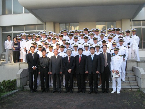 On October 16th, 72 students and 11 faculty members of Korea Maritime University visited Kobe University, Faculty of Maritime Sciences. Their training ship "HANNARA" called at Osaka during the period of their onboard training program, and they visited us to promote international exchanges as a partner university. Professor NISHIO Shigeru, the person in charge of international exchange activities, gave a welcome speech, and the students and faculty members went a campus tour. They visited the Maritime Museum, Ship Model Basin and training ship "Fukae-maru". Our postgraduate students, who graduated from Korea Maritime University, cooperated to guide the campus tour.