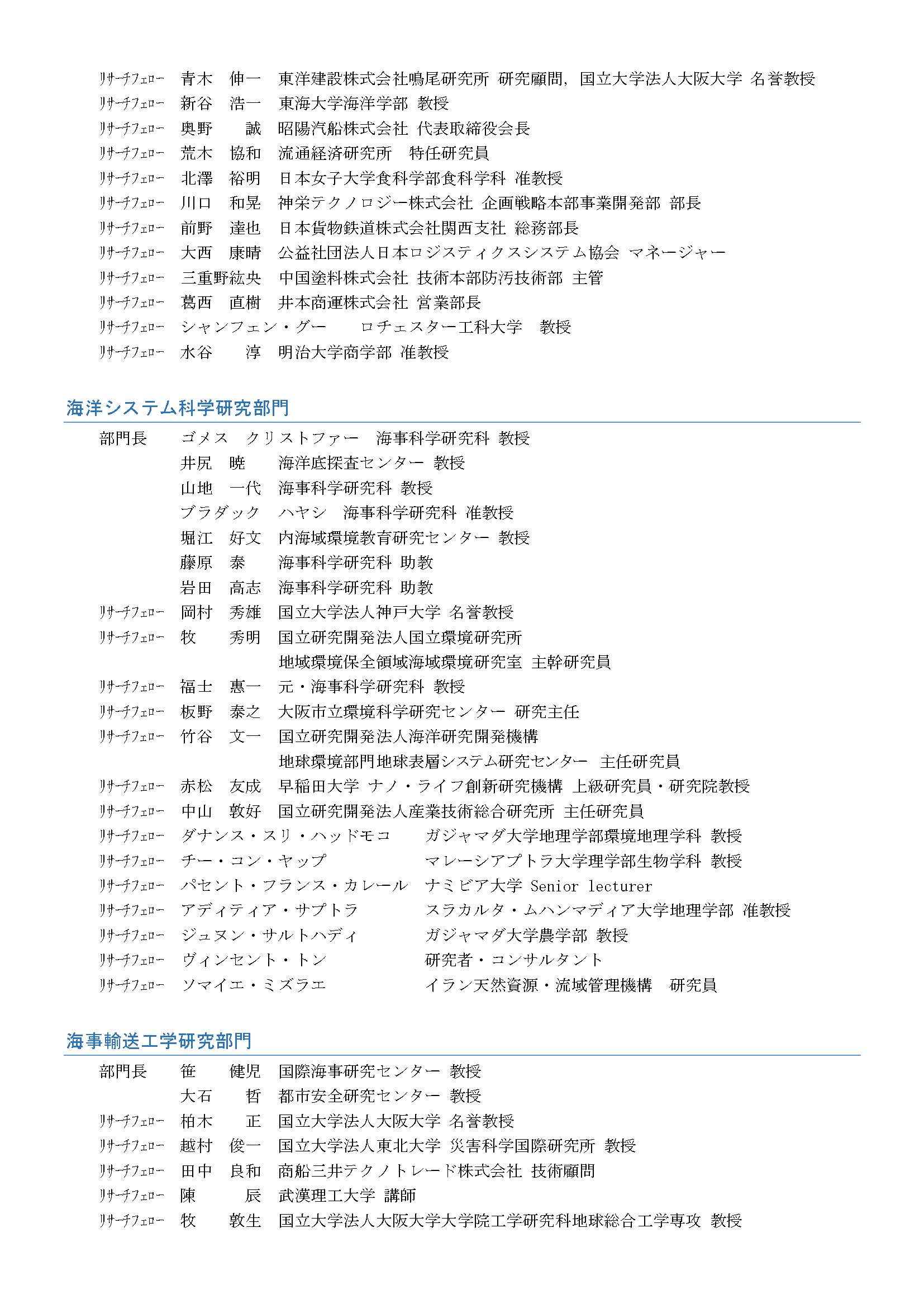 | Research Fellow | Makoto OKUNO Shoyokisen Kaisha,LTD. |