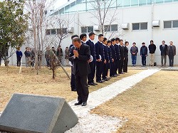 阪神・淡路大震災から18年の平成25年1月17日、神戸大学は犠牲者を追悼しました。深江キャンパスでは午後零時半、練習船「深江丸」の汽笛が鳴るなか、慰霊碑前で教職員・学生約50人が黙祷。続いて、石田廣史理事、小田研究科長や制服姿の学生自治会代表らが、次々と献花を行いました。